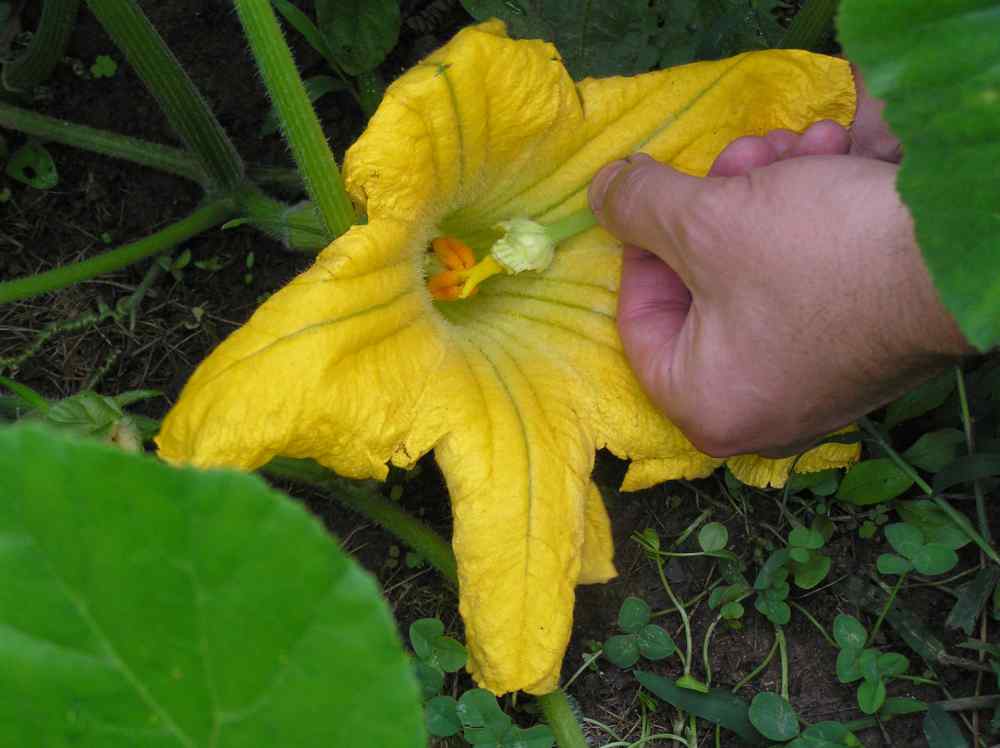 All members of the cucurbit family require this pollination tango to make sure that the female flowers produce fruit.