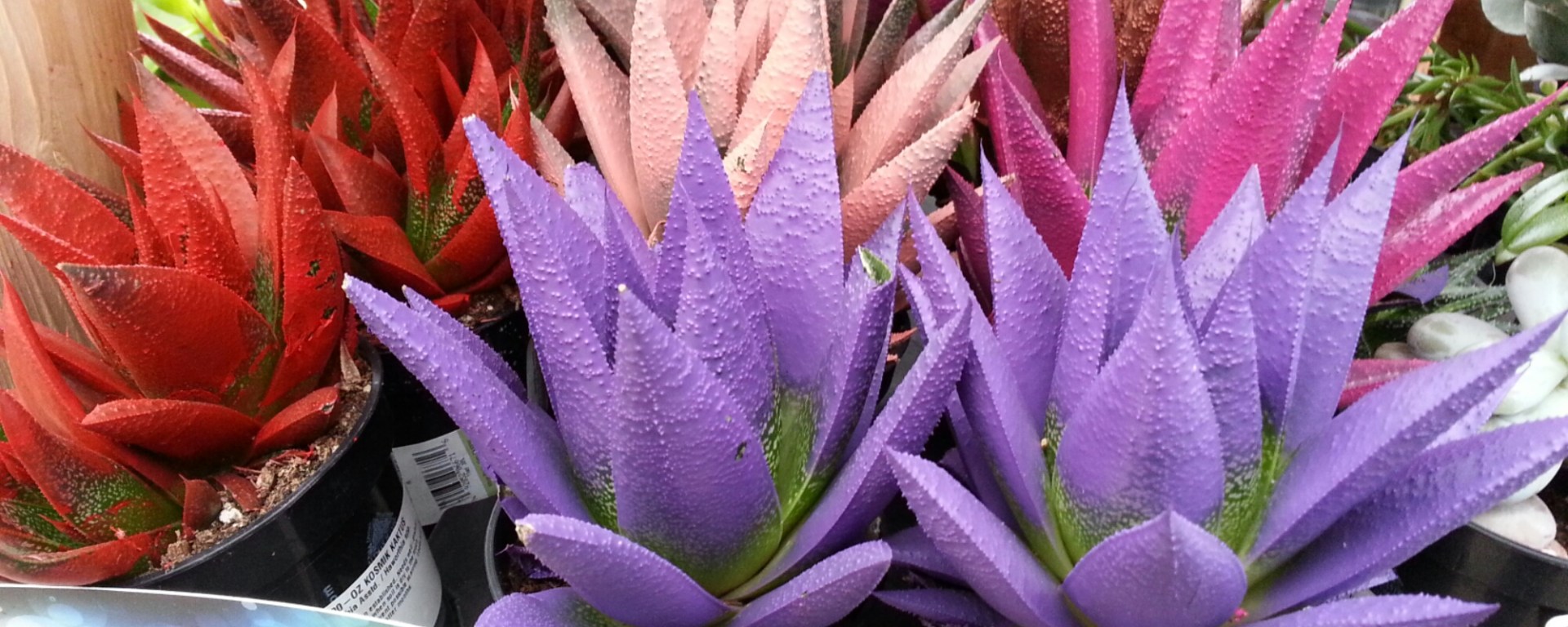 While strolling through the garden section of the store, my eyes were immediately fixed upon one of the most tragic things I’ve seen at a garden center in a while: A display full of perfectly innocent succulent plants that had been dipped in various colors of metallic and neon paints sat there, an affront both to my plant scientist mind and eyes.
