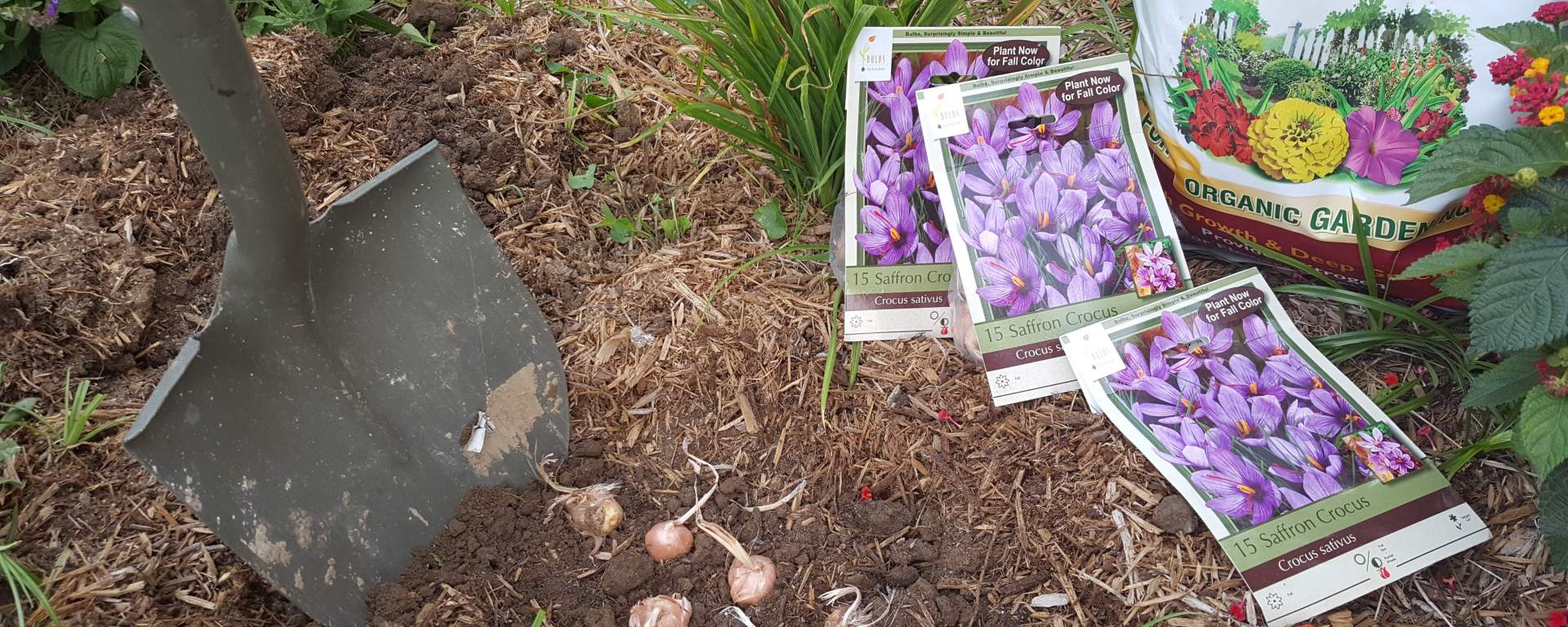After you dig out a hole wide and deep enough for your bulbs (or corms), toss in a little organic fertilizer such as blood meal and bone meal. You can also buy special bulb booster fertilizer, but it isn’t necessary. The goal of planting these bulbs in the fall is to get good root growth through the winter to support the plant next spring. A little boost will help. I’ve also heard people say that these organic fertilizers aren’t pleasing to squirrels, who may come along to lunch on your bulbs.