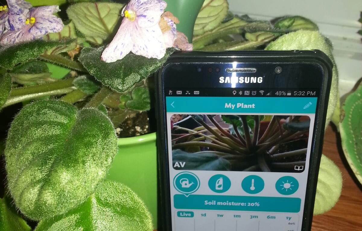 The technological gizmo that is sending information to my phone concerning my African violet plant is called a Parrot Flower Power. I mentioned it a few weeks ago in my article giving a brief overview of current garden trends. I was so intrigued that I just had to try it out.